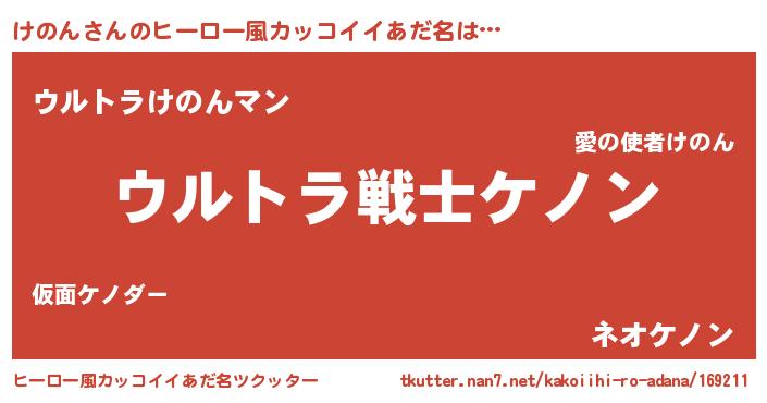 | 男性向けラノベタイトル風あだ名 | 『魔法科高校のけのん』『緋弾のケノン』 |