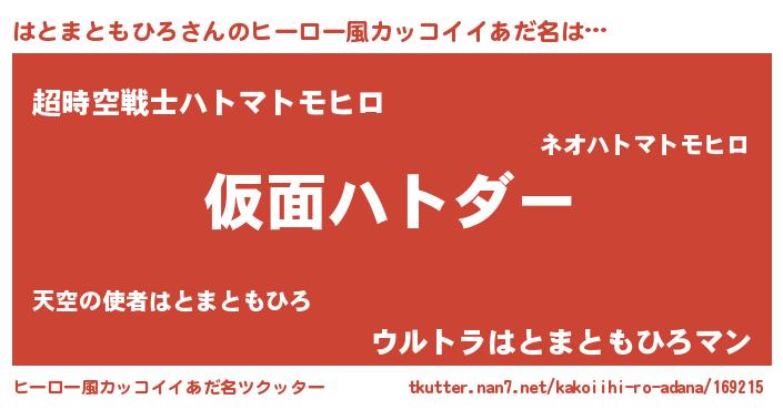 | 男性向けラノベタイトル風あだ名 | 『この素晴らしい世界にはとまともひろを!』 |