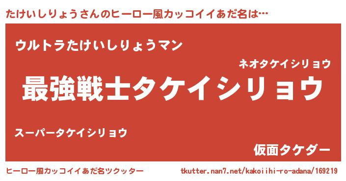 | 胡散臭い通販商品みたいなあだ名 | 『テレビで話題の高麗人参…その名も「たけいしりょう」』 |