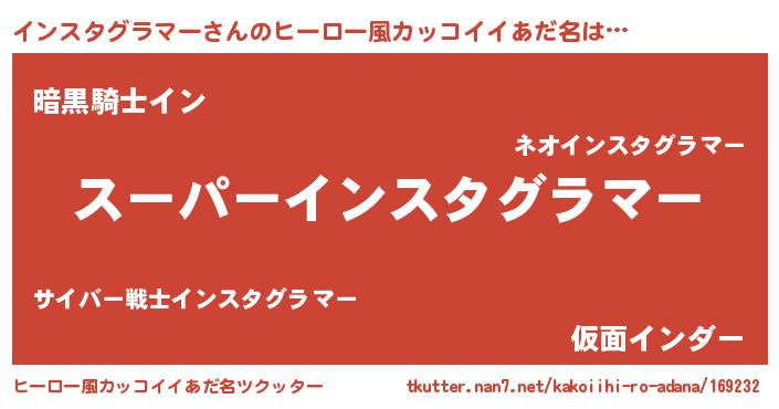 | 男性向けラノベタイトル風あだ名 | 『インスタグラマーに滅ぼされるだけの簡単なお仕事です』 |