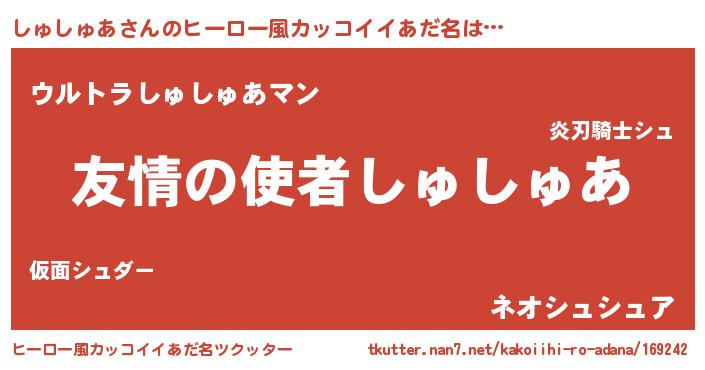 | ヘコむあだ名 | 『豆乳』『しゅしゅあ(笑)』『しゅを』 |