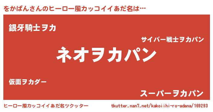 | 男性向けラノベタイトル風あだ名 | 『をかぱんという概念が存在しない退屈な世界 』 |