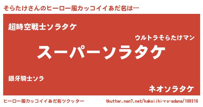 | 意味不明あだ名 | 『ペロリンそらたけ』『自称そらたけ』 |