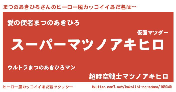 | 男性向けラノベタイトル風あだ名 | 『まつのあきひろの憂鬱』 |