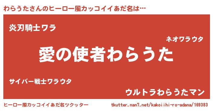 | 男性向けラノベタイトル風あだ名 | 『転生したらわらうただった件』 |