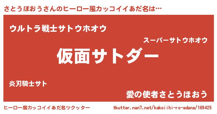 | 男性向けラノベタイトル風あだ名 | 『この素晴らしい世界にさとうほおうを!』 |