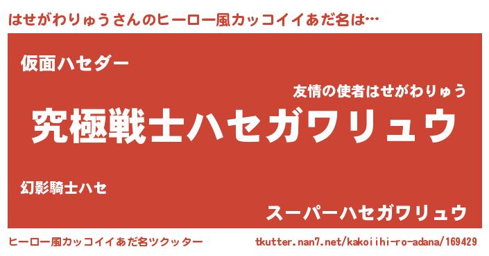 | 意味不明あだ名 | 『自称はせがわりゅう』 |