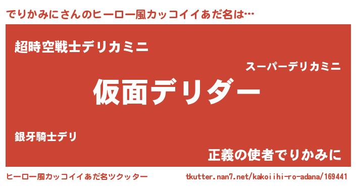 | 男性向けラノベタイトル風あだ名 | 『この素晴らしい世界にでりかみにを!』 |