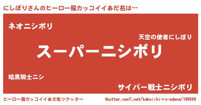 | 男性向けラノベタイトル風あだ名 | 『ニシボリアートオンライン』 |