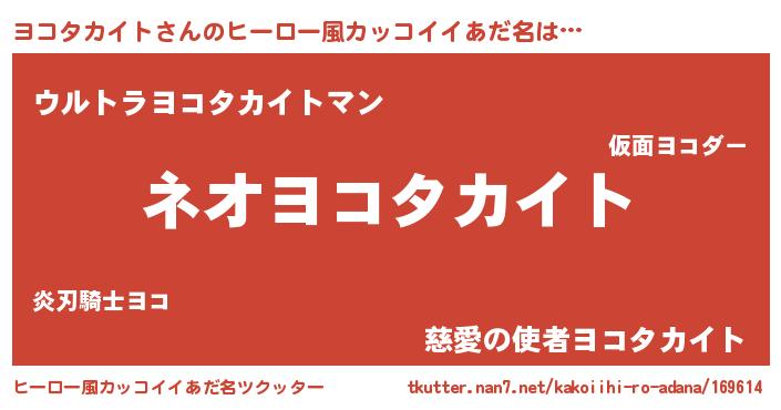 ヨコタカイトさんのヒーロー風カッコイイあだ名をツクッター!