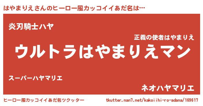 | ファンタジー風あだ名 | 『エターナルハヤマリエー』 |