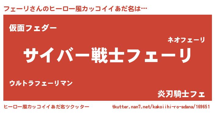 | 意味不明あだ名 | 『自称フェーリ』『永久保存フェーリ』 |