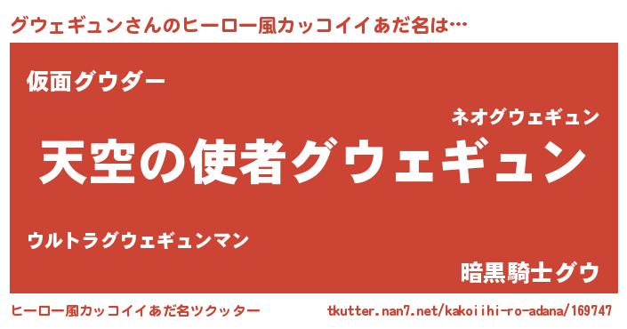 | 男性向けラノベタイトル風あだ名 | 『グウェギュン~年齢イコール彼女いない歴の魔法使い~』 |