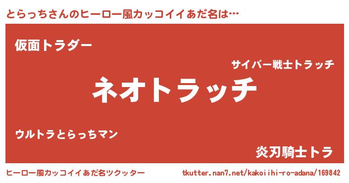 | 胡散臭い通販商品みたいなあだ名 | 『前代未聞の健康食品…その名も「とらっち」』 |