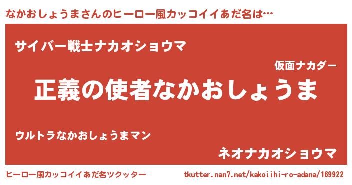 | ヘコむあだ名 | 『なかおしょうま(苦笑)』『なまこ酢』 |