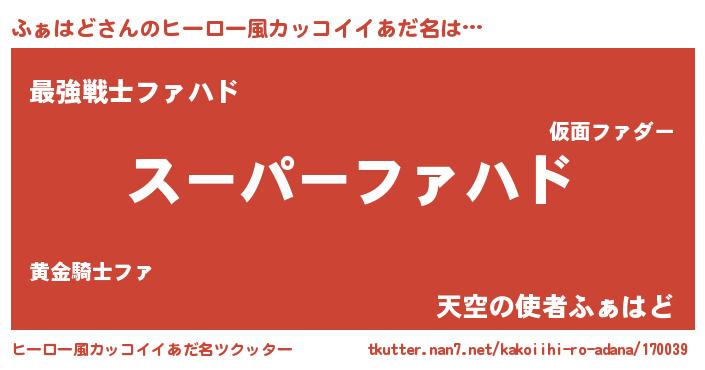 | 男性向けラノベタイトル風あだ名 | 『ふぁはどの憂鬱』 |