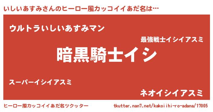 | 女子向けラノベタイトル風あだ名 | 『いしいあすみは平凡を望む』 |