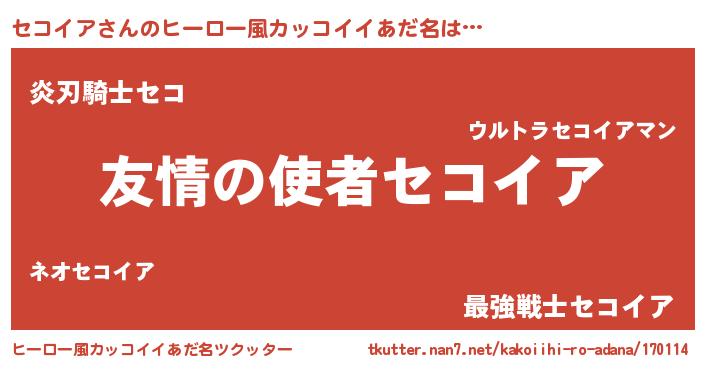 | 男性向けラノベタイトル風あだ名 | 『おまえをオタクにしてやるから、俺をセコイアにしてくれ! 』 |