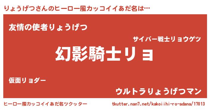 | 男性向けラノベタイトル風あだ名 | 『転生したらりょうげつだった件』 |