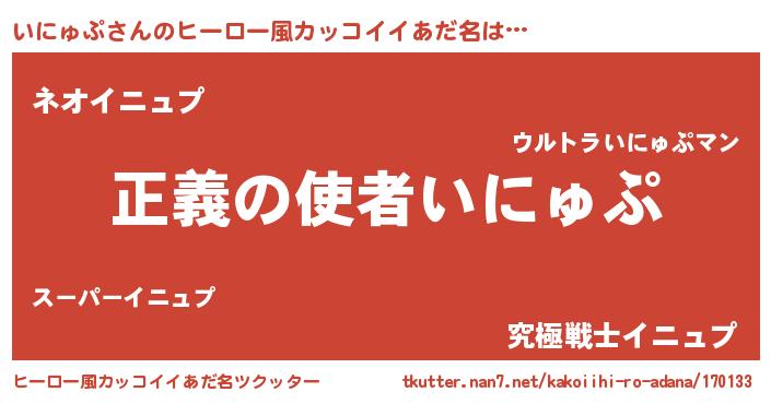 | ヘコむあだ名 | 『いにゅぷ(震え声)』『なまこ酢』 |