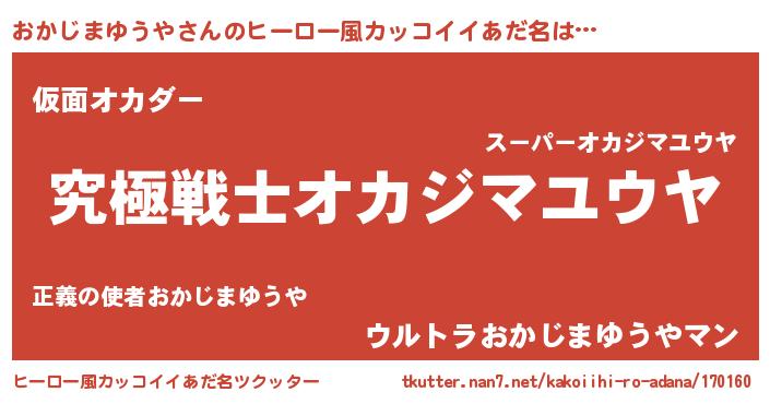 | 男性向けラノベタイトル風あだ名 | 『Re:おかじまゆうやから始める異世界生活』 |