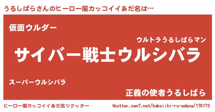 | 男性向けラノベタイトル風あだ名 | 『Re:うるしばらから始める異世界生活』 |