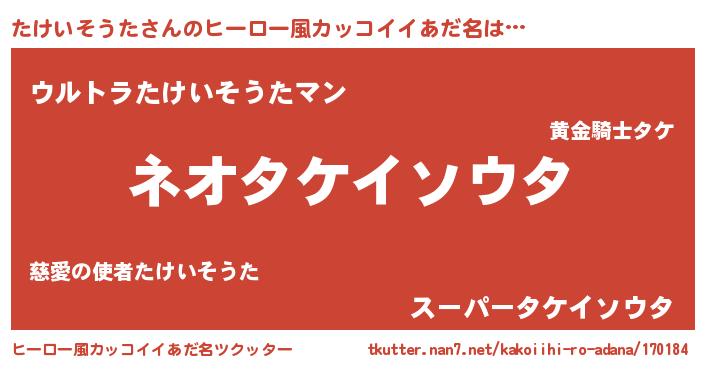 | 意味不明あだ名 | 『永久保存たけいそうた』 |