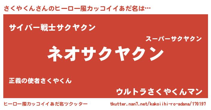 | 意味不明あだ名 | 『永久保存さくやくん』『自称さくやくん』 |