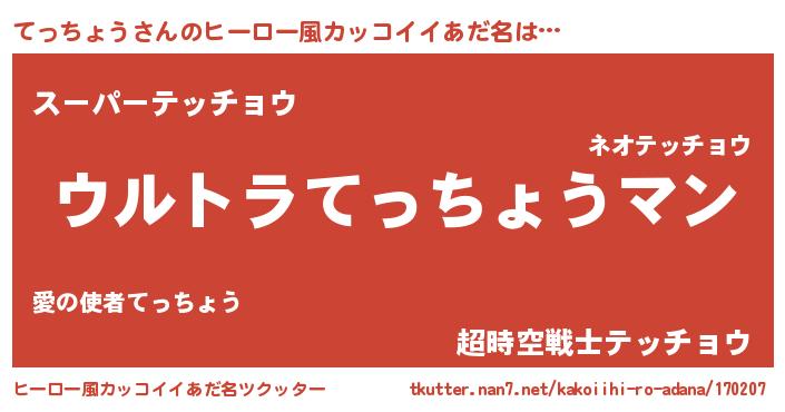 | 伝説のあだ名 | 『最強の忍者てっちょう』 |