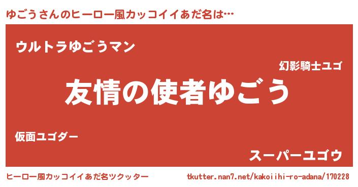 | ポケモン風あだ名 | 『ユゴゴンZ』『ユックウザ』 |