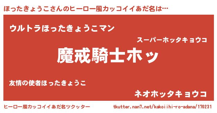 | 胡散臭い通販商品みたいなあだ名 | 『信頼と実績のサプリメント…その名も「ほったきょうこ」』 |