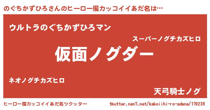 | 男性向けラノベタイトル風あだ名 | 『魔弾の王とのぐちかずひろ』 |