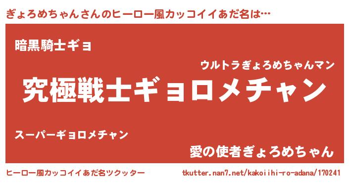 | 女子向けラノベタイトル風あだ名 | 『ぎょろめちゃんストレイドッグス』 |