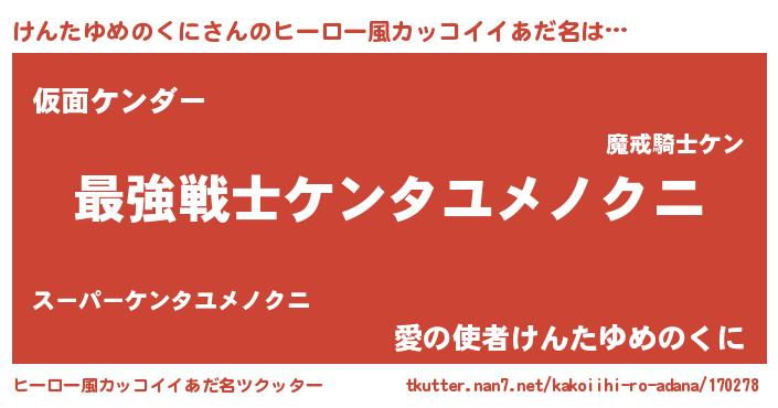 | 女子向けラノベタイトル風あだ名 | 『闇のけんたゆめのくに』 |