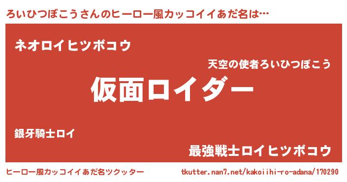 | ヘコむあだ名 | 『ろいひつぼこう(笑)』『ろいっぺ』 |