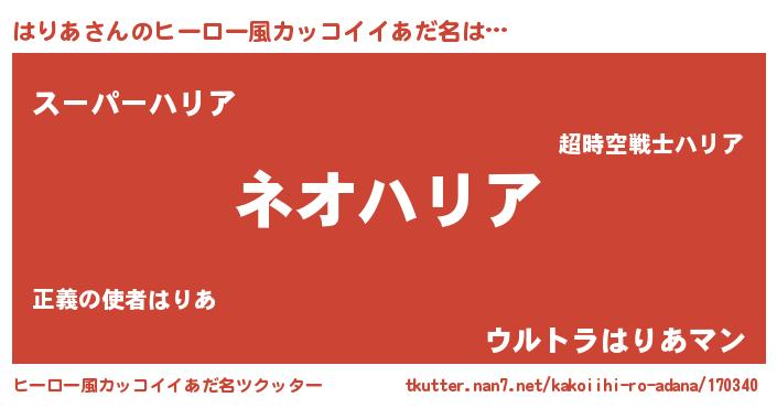| ヘコむあだ名 | 『はりあ(震え声)』『はりにゅー』 |