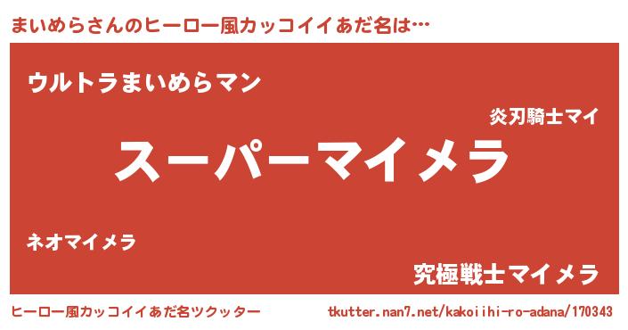 | 恥ずかしいあだ名 | 『プリティーまいめら』『まいっちょ』 |