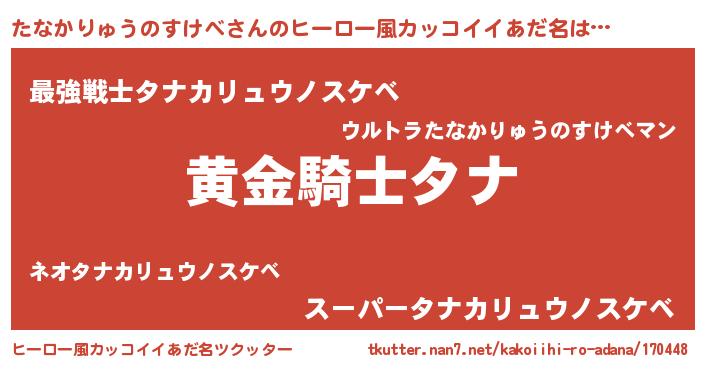 | 男性向けラノベタイトル風あだ名 | 『タナカリュウノスケベスレイヤー』 |