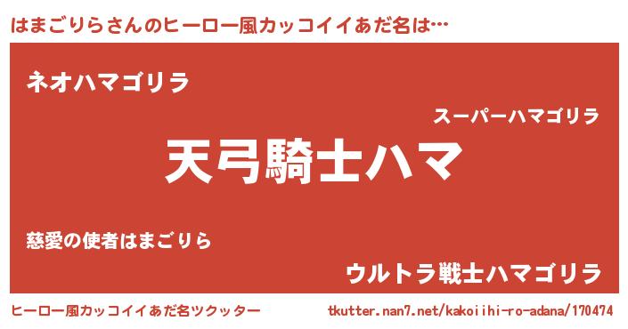 | 男性向けラノベタイトル風あだ名 | 『うちのはまごりらが世界を掌握している!』 |