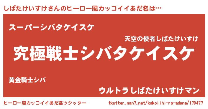 | 男性向けラノベタイトル風あだ名 | 『しばたけいすけ~年齢イコール彼女いない歴の魔法使い~』 |