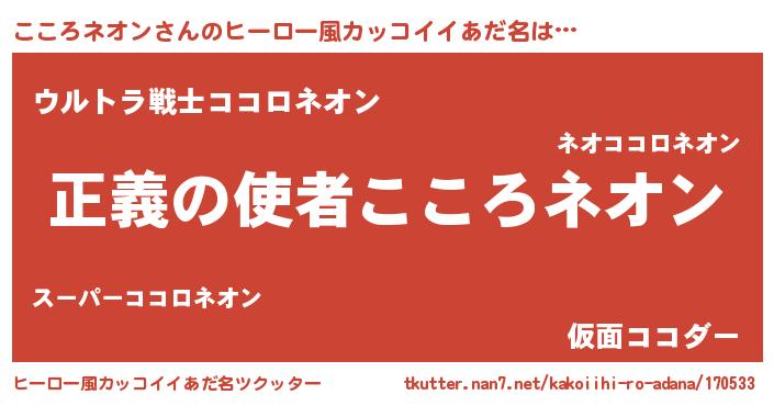 | ヘコむあだ名 | 『こころネオン(小並感)』『ここもー』 |