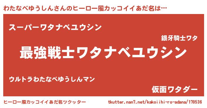 | 男性向けラノベタイトル風あだ名 | 『転生したらわたなべゆうしんだった件』 |