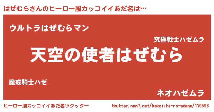 | 男性向けラノベタイトル風あだ名 | 『ノーゲーム・ノーハゼムラ』 |