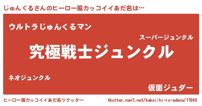 | 男性向けラノベタイトル風あだ名 | 『Re:じゅんくるから始める異世界生活』 |