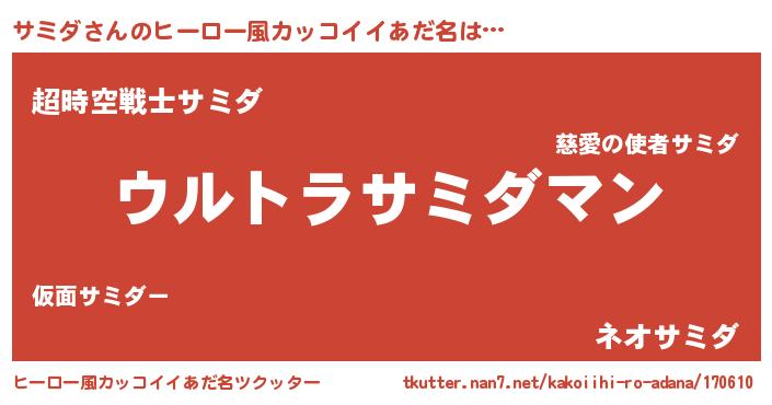 | 男性向けラノベタイトル風あだ名 | 『やはりサミダの青春ラブコメはまちがっている 』 |