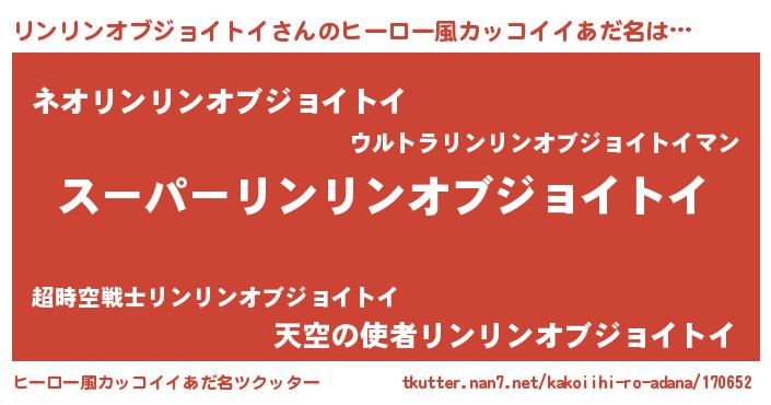 | 男性向けラノベタイトル風あだ名 | 『リンリンオブジョイトイに滅ぼされるだけの簡単なお仕事です』 |