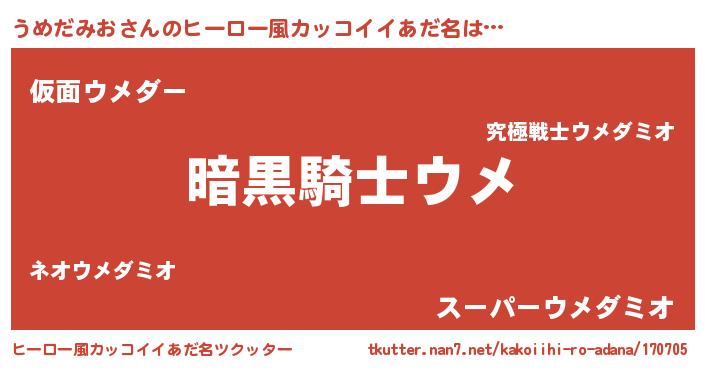 | 料理風あだ名 | 『うめだみおごはん』 |