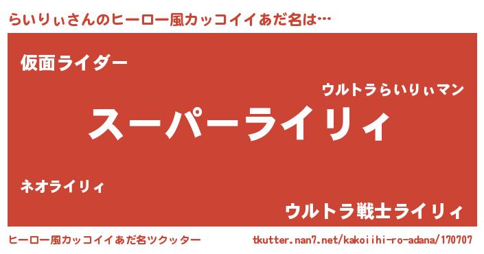 | 意味不明あだ名 | 『ペロリンらいりぃ』『自称らいりぃ』 |