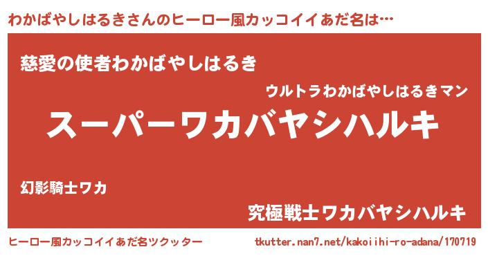| 男性向けラノベタイトル風あだ名 | 『ワカバヤシハルキアートオンライン』 |
