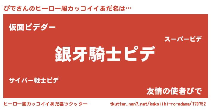 | 男性向けラノベタイトル風あだ名 | 『ぴでの嫁は女の子じゃないと思った?』 |